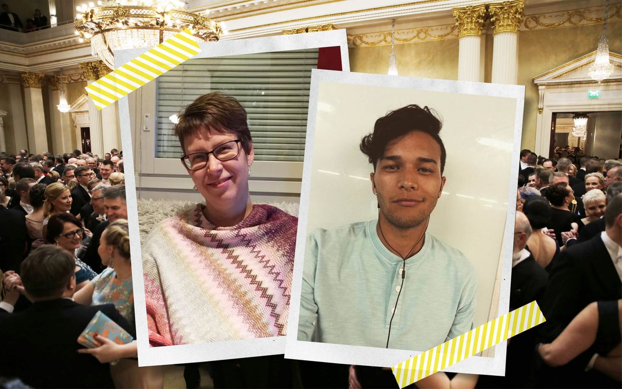 Oletko koskaan miettinyt, mitä tekisit, jos saisit yllättäen kutsun Linnan juhliin? Siivooja Heli Riihiaho ja opiskelija Taleb Hosseini tietävät.