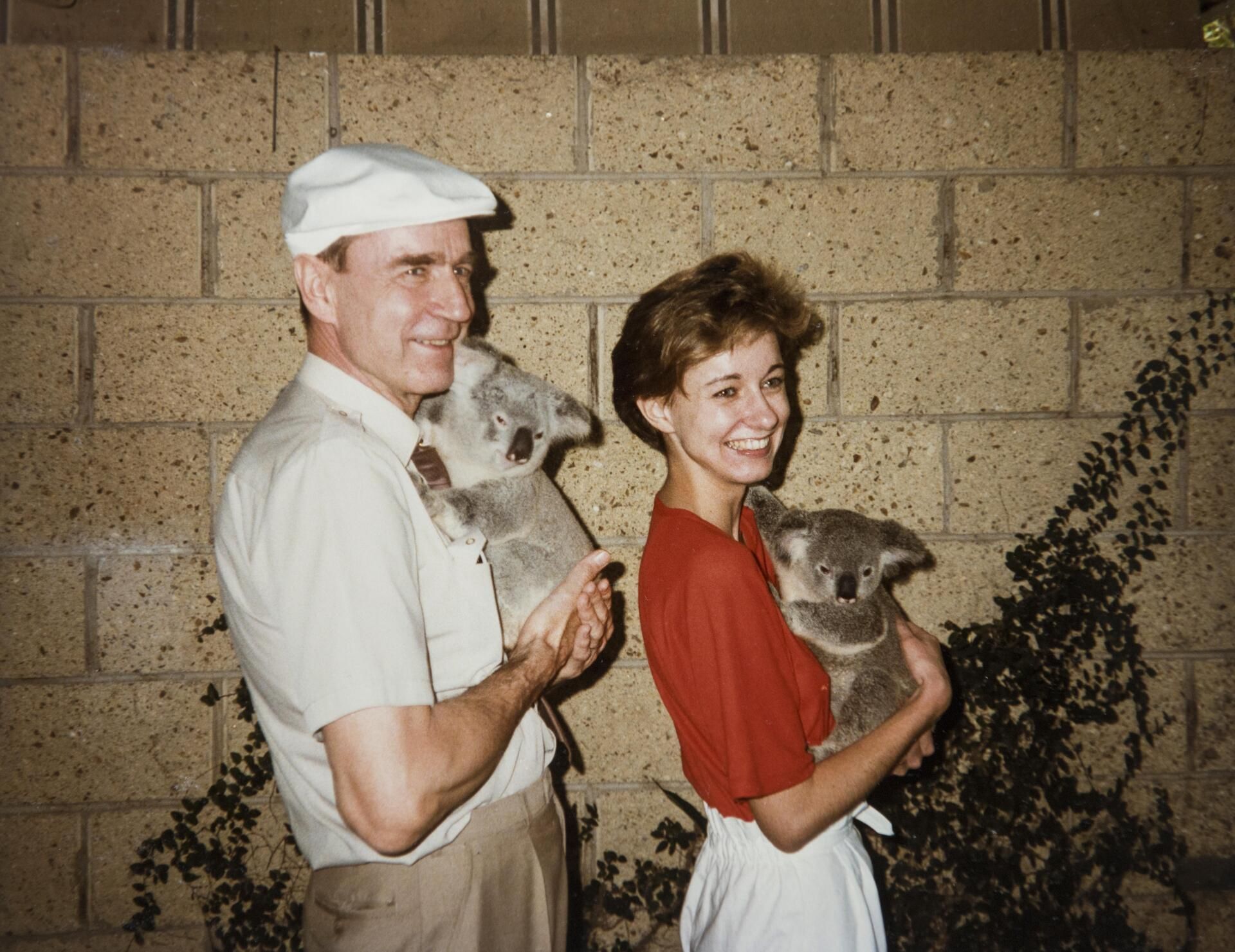 Assi oli Mauno-isän mukana Australiassa, Japanissa ja Havaijilla vuonna 1985. Brisbanessa he saivat koalat syliinsä.