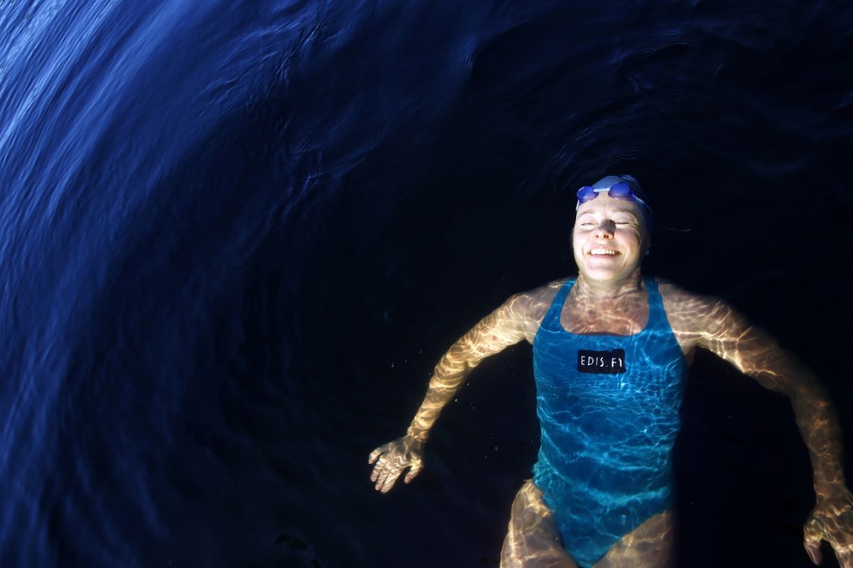 Vedessä voitan itseni. Vesi on mahtava luonnonvoima, villi ja vapaa. Joka kerran, kun lähden uimaan, pelottaa vähän. Miksi ihmeessä haluan tuonne kylmään, tummaan ja kesyttömään veteen?