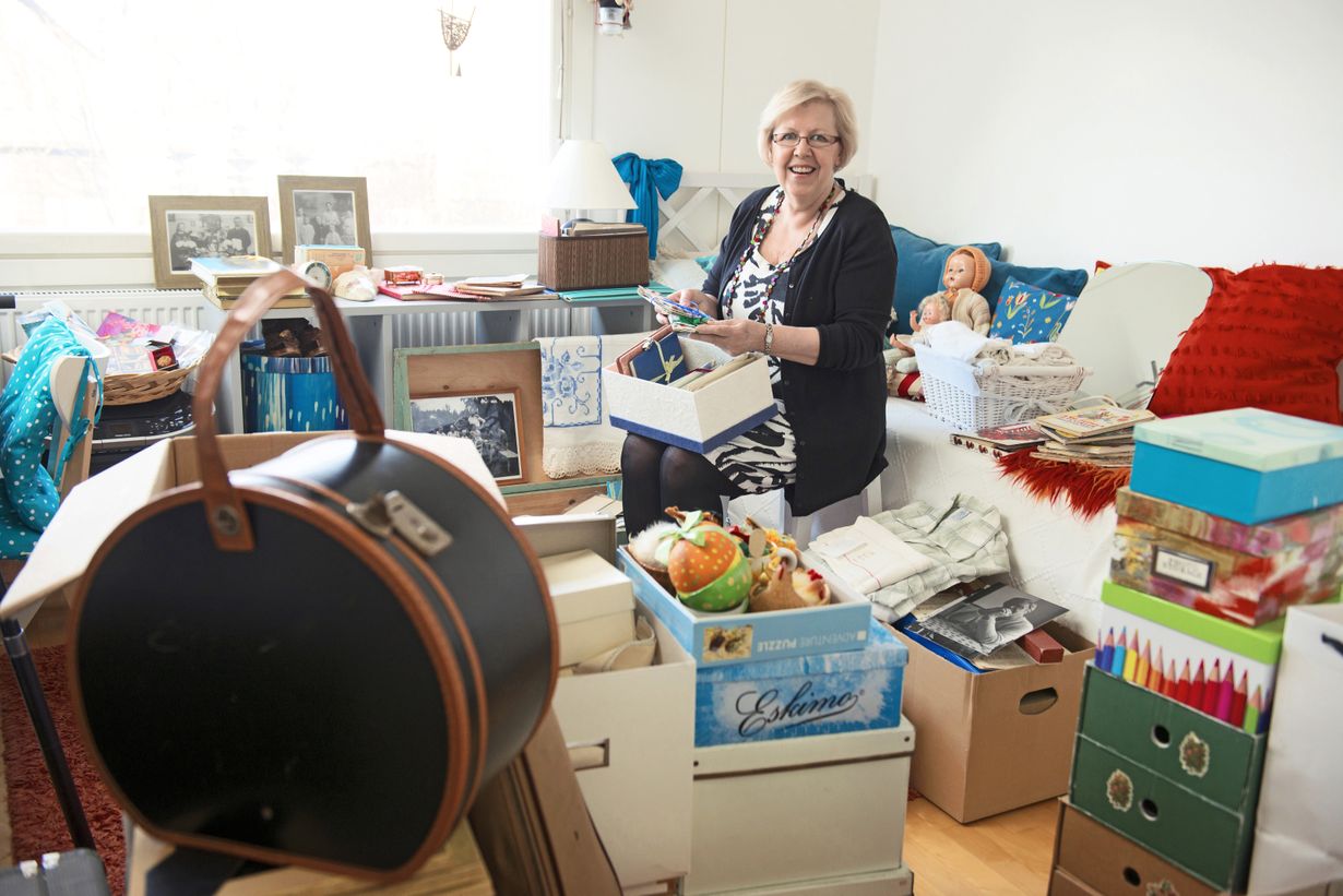 Espoolainen eläkeläinen Eeva-Liisa Soisalo, 67, on säilyttänyt muistonsa. Se on tehnyt kodista ahtaan.