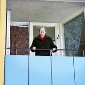 Taustalla nainen puhelee arkisesti, äiti.