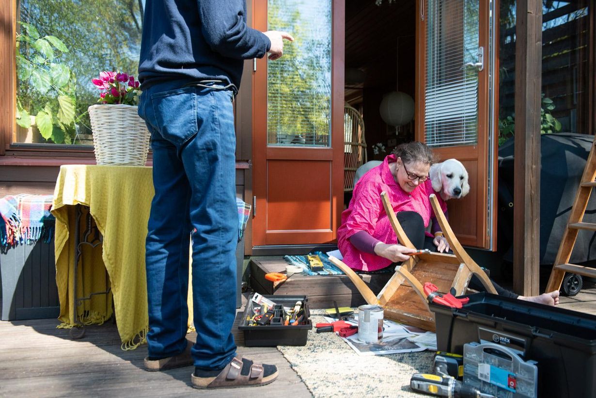 Olen innokas mutta en kovin näppärä tai tarkka remontoija. Kurre on perusteellinen ja malttaa esimerkiksi maalatessa teipata kaiken siististi. Minä saatan vain hujauttaa maalit seinälle.