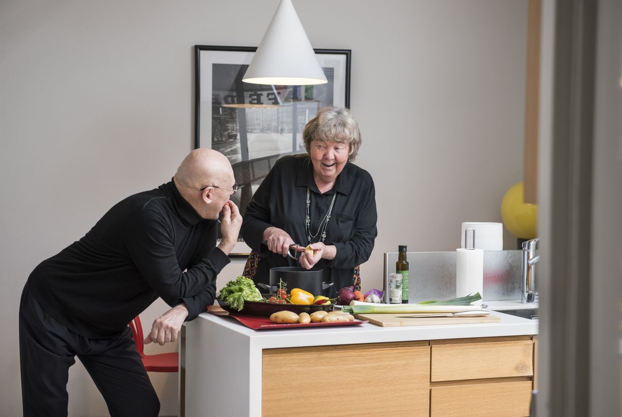 Meidän on hyvä olla yhdessä. Jorman kanssa oloni on inspiroitunut ja turvallinen. En ole mikään keiju, vaan hiukan pyöreä. Kun sain tekonivelen, Jorma kävelytti minua Töölönlahden ympäri ja kuunteli jokaisen ajatukseni.”