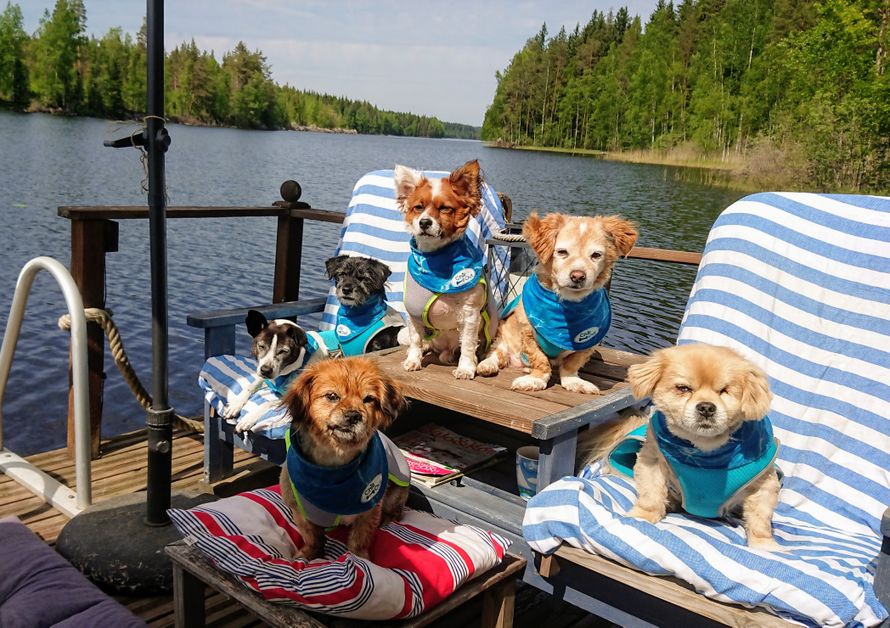 Pienessä eteläsavolaisessa saaressa nauttii kesäpäivistä joukko ulkomailta adoptoituja kodittomia koiria. Riitta Koiviston pesue käyttää kiltisti pelastusliivejä, ottaa laiturilla aurinkoa ja vahtii huussia.