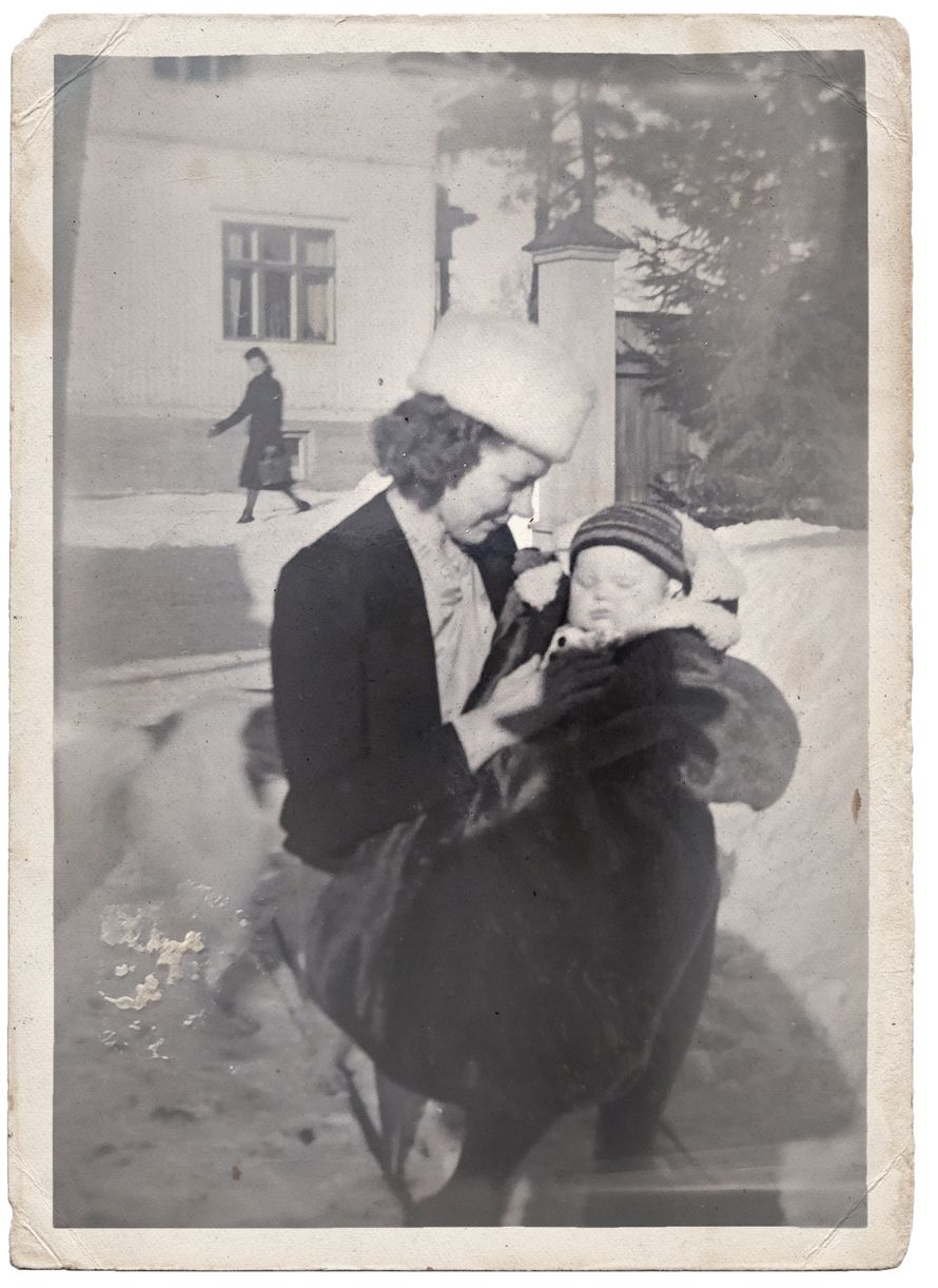 Tässä kuvassa on Kalle Tjäder vuonna 1948. Kallella oli Downin syndrooma, mutta Inga-äiti ei lähettänyt häntä lapsuudessa laitokseen, kuten tuohon aikaan oli tapana. Ingan kuoltua Kallesta huolehtivat muut sukulaiset, suurella rakkaudella.