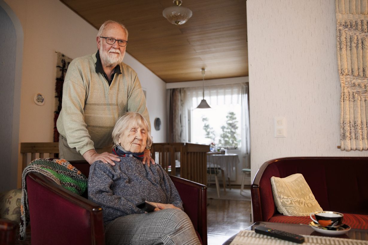 ”Muistutan välillä Kimmoa, että jos elämä kanssani kyllästyttää, voihan hän muuttaa pois. Ei välttämättä ole hauskaa, kun seurana on vanha ihminen tapoineen ja puheineen. Joskus toistan samat jutut monta kertaa”, Mirjam sanoo.
