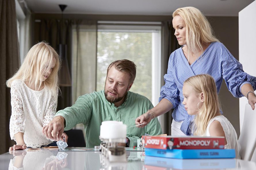 Kimmo Salmi, 42, asuu vaimonsa Teean sekä Amandan, 12, ja Monican, 9, kanssa Lempäälässä. Afrikan tähti ja Monoppoly ovat perheen lempipelejä.