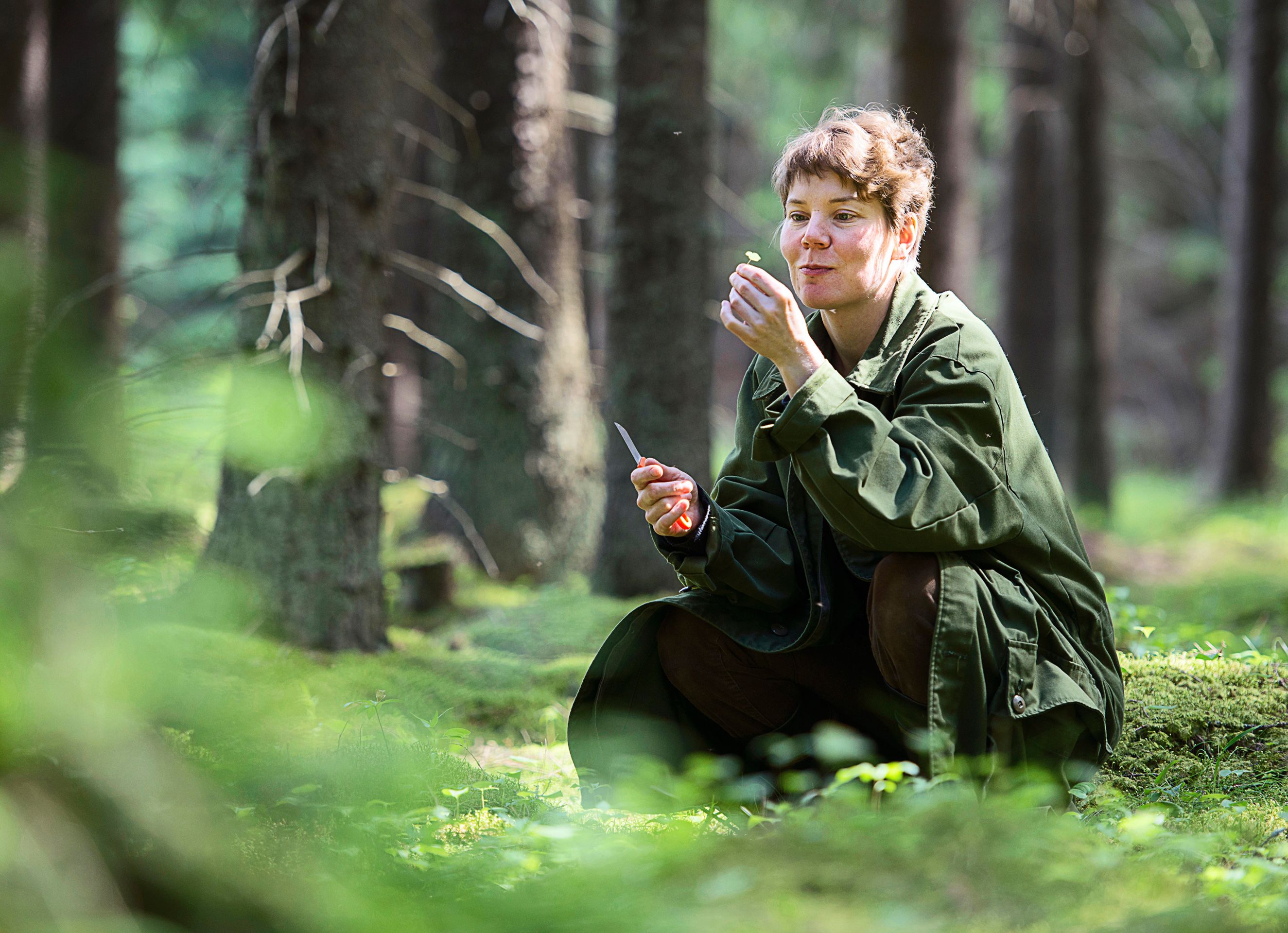 Metsä on tärkeä molemmille. Irene huomaa siellä kasvit ja eläinten jäljet. Korppi pitää huolen siitä, etteivät he eksy.