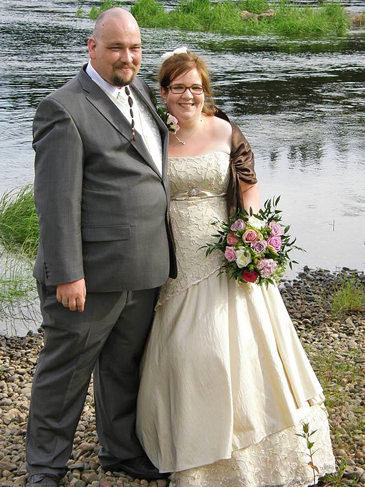 Jari ja Miia vihittiin Vaalassa. – Poseeraamme hääseremonian jälkeen jo vapautuneissa tunnelmissa Oulujoen rannalla. Avioliittoon astuminen oli ihana asia elämässämme.