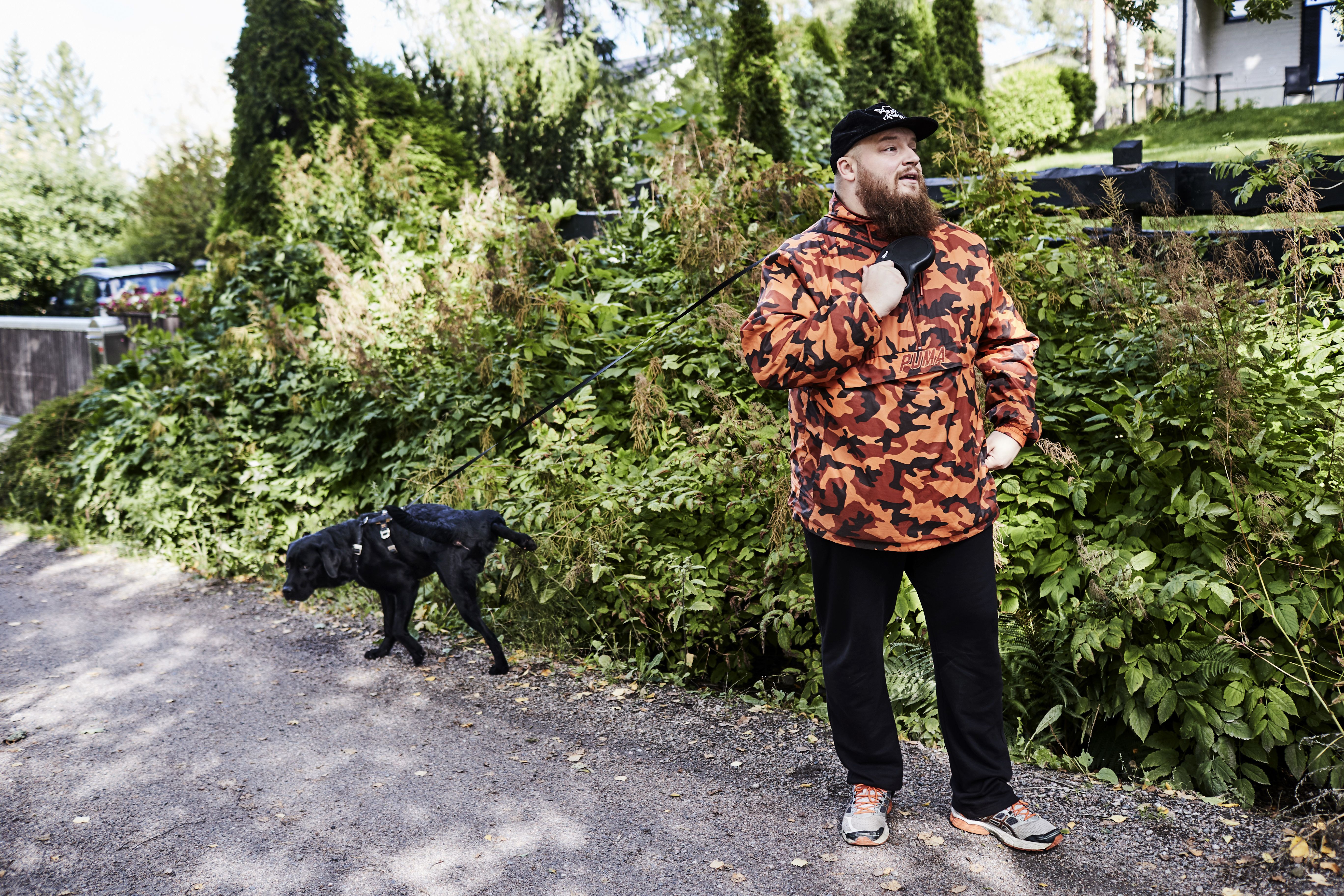 Espoolaisen metsän reunassa ei kulje muita. Paavo kurvaa haistelemaan pusikkoa ja pysähtyy katsomaan oravaa.