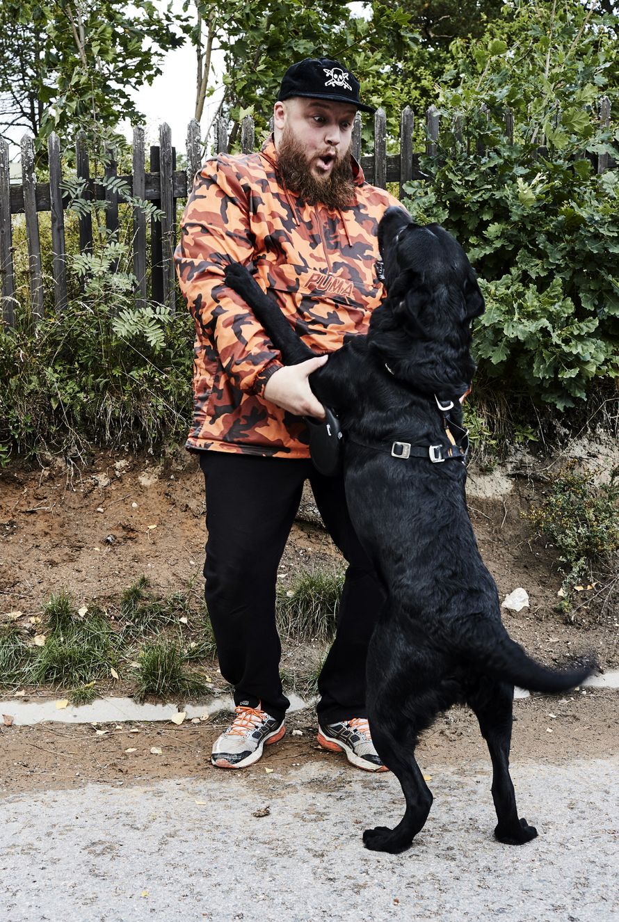 Nyt Thomas kävelee tietä Paavon kanssa. Hienosti meni, Thomas sanoo Paavolle, kun Paavo menee haukkumatta toisen koiran ohi.