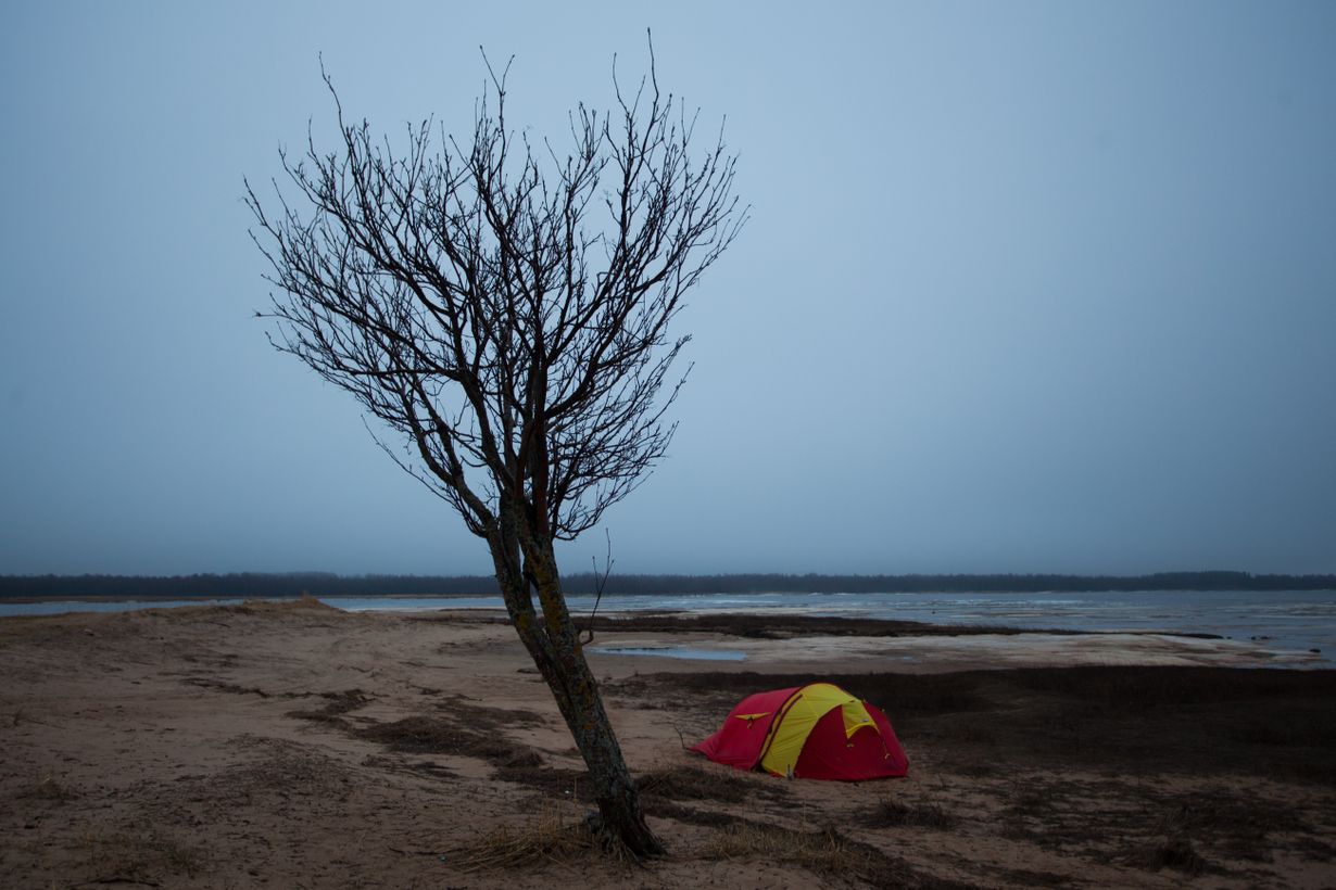 Toukokuun valoisat yöt helpottivat projektin aloittamista. Ensimmäisen yön yksin Liisa vietti kotisaaressaan meren rannalla. Ilma oli kaunis, joten hän päätti nukkua taivasalla makuupussissa.
