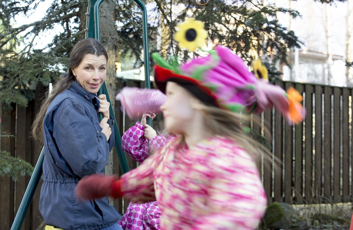 ”Olen lapsistani erossa vain, kun he ovat koulussa tai päiväkodissa. Tyttäreni ovat hyviä tyyppejä. Minulla on heidän kanssaan hauskaa.”