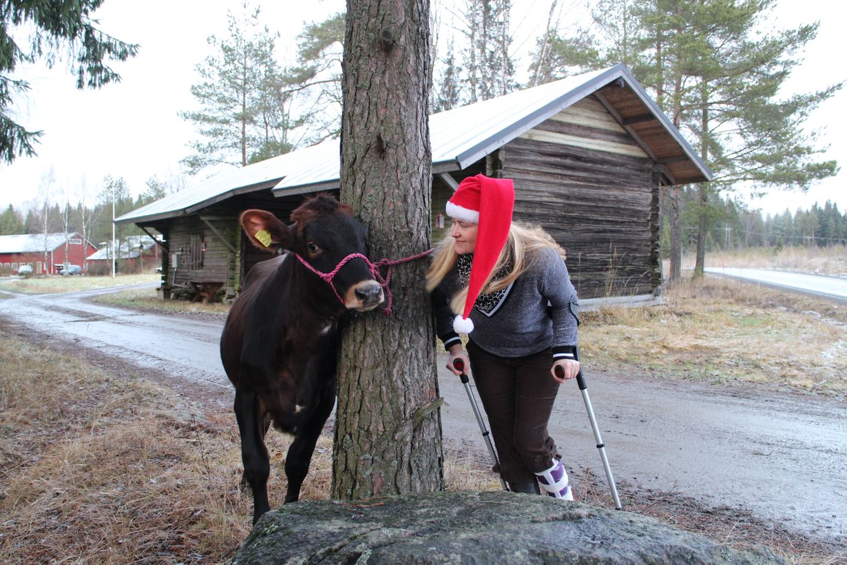 "Siihen kuuluu siivousta lypsyjen välillä ja jälkeen. Pyykkäystä, kokkausta, tiskausta, kuskausta, paperihommia, piha- ja peltohommia, polttopuuhommia. Vastapainoksi harrastan putkirullausta ja kuorolaulua.
