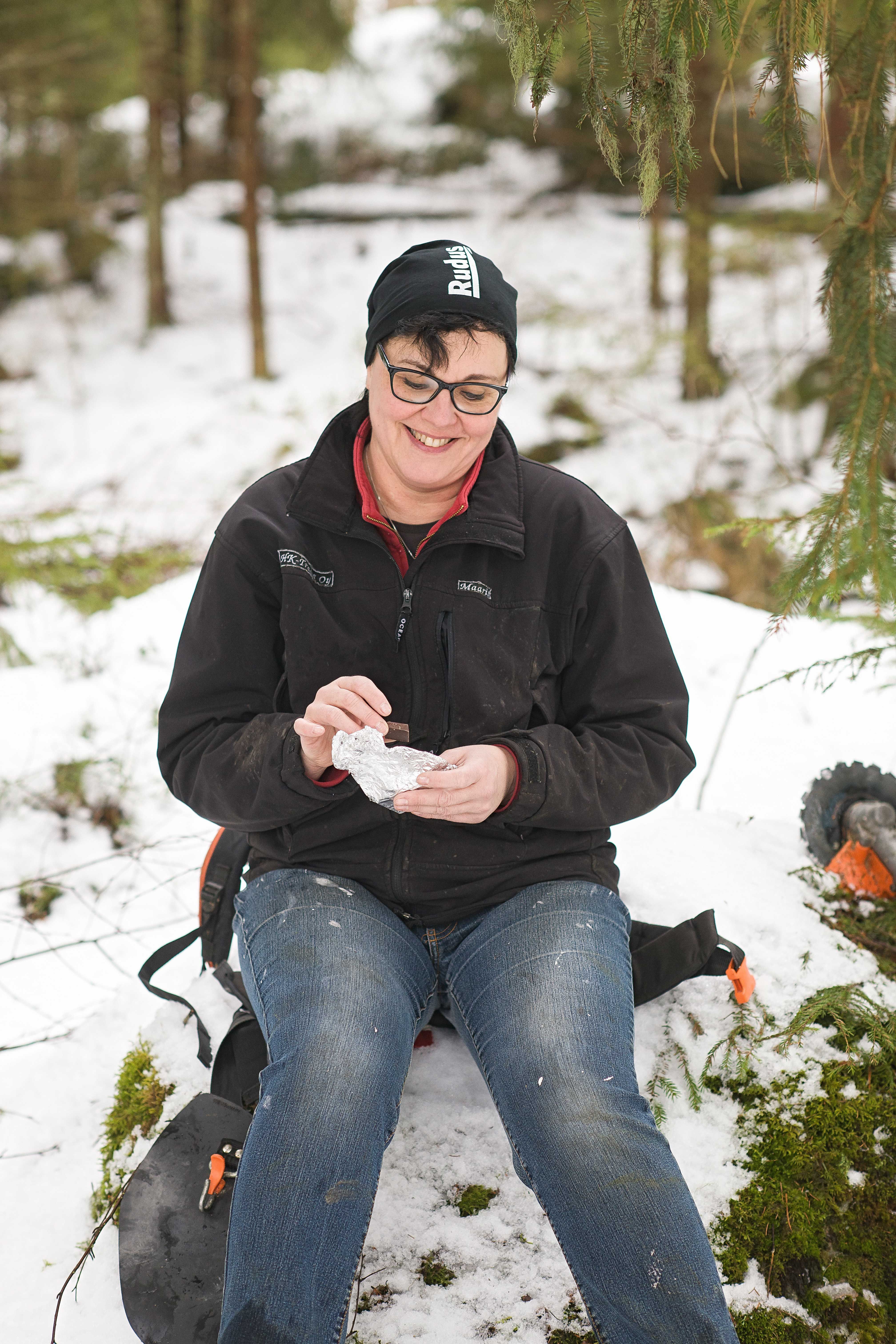 "Olen käynyt metsätöissä pienestä tytöstä asti. Minusta metsässä on kiva tehdä jotain, ei vain oleilla. Toivoin oppivani metsän hoitamista raivaussahalla, mutta koneiden käyttö tuntui pelottavalta.