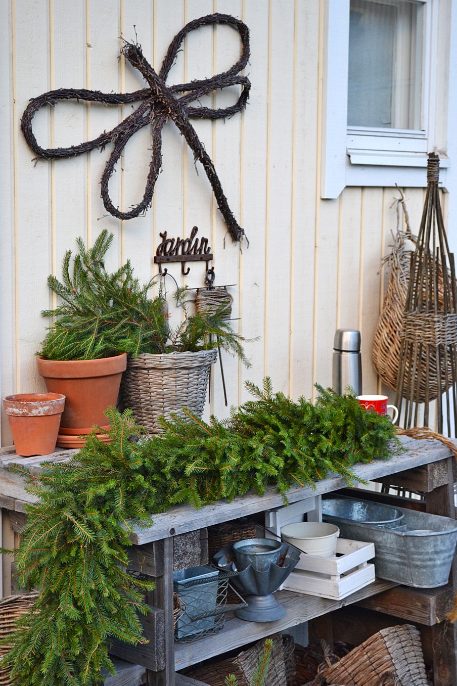 Joulukoristeet syntyvät mökiltä haetuista havuista.
