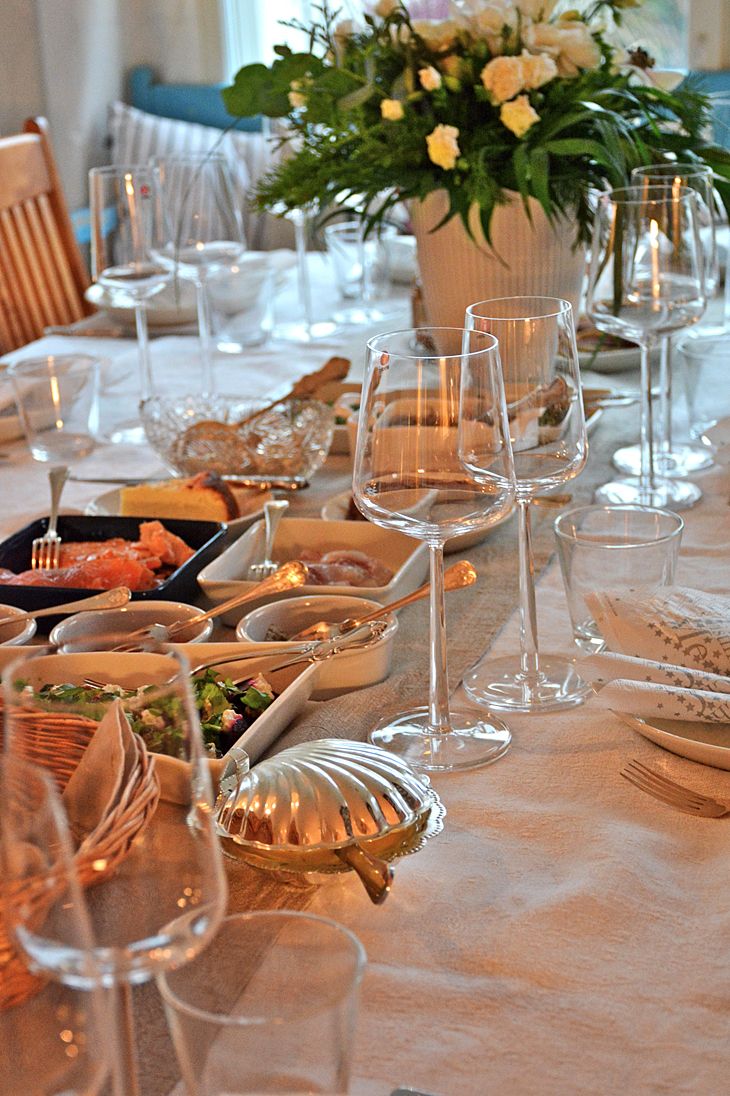 Illalliselle pukeudumme juhlavaatteisiin. On kauluspaidat, juhlamekot ja korut. Kaikilla muilla on juhlakengät, mutta minä vedän jalkaan itse neulomani villasukat. Teen joka vuosi jouluksi uudet sukat.
