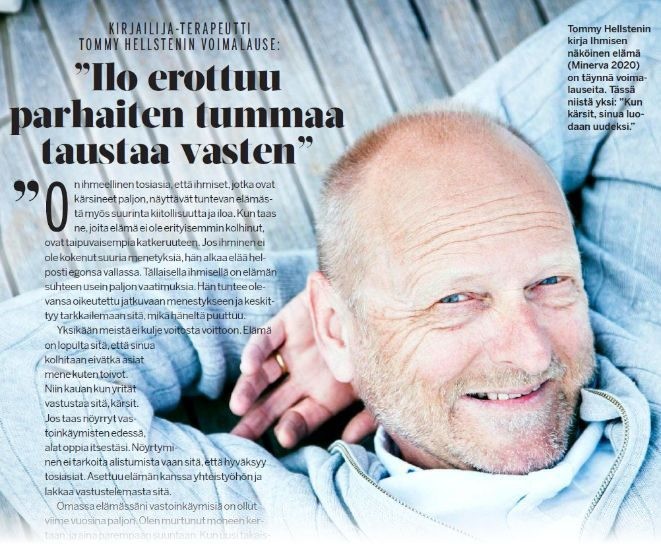 TOMMY NYT: ”Sairastuin pari vuotta sitten motoneuronitautiin ja liikun kotona rollaattorilla. Allekirjoitan yhä voimalauseeni, mutta olen oppinut syvemmin ymmärtämään, mitä se tarkoittaa. Elämällä on kyky polkea ihminen maahan. Maassa maatessa voin valita, kummin päin suhtaudun. Valitsenko katkeruuden? Vai kysynkö, mitä tämä kokemus tuli minulle opettamaan ja mitä hyvää tästä voi tulla?” Tommy Hellsten on 74-vuotias kirjailija ja terapeutti.