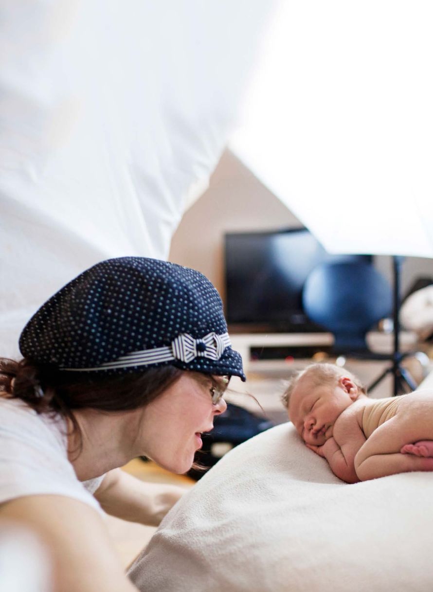 Perheen olohuoneessa Espoossa on lämmin. Niki on tuonut kameroiden, lamppujen, säkkituolin, peitteiden ja huivien lisäksi mukanaan pienen lämmityslaitteen. Vastasyntyneiden kuvauksissa on tärkeää, että vauvalla on ilman vaatteitakin tyytyväinen olo.