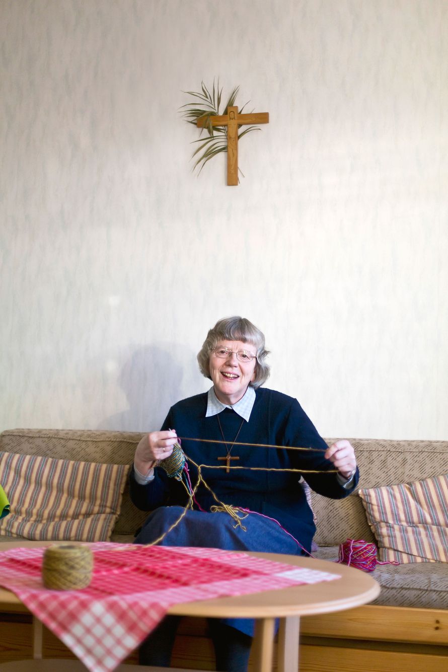 Nykyisessä yhteisössämme meitä on vain kaksi: minä ja pikkusisar Margareta, 74. Jaamme kodin, ateriat ja rukoukset. Yksi huoneistamme on sisustettu kappeliksi. Maailma tulee sisään: pihalta kantautuvat lasten äänet ja viereisen talon ikkunoista näkee meille.