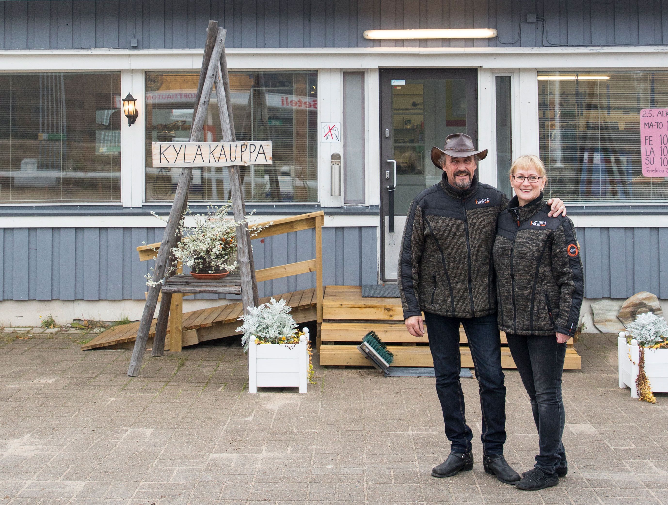 Alussa kuljimme yli 70 kilometrin päähän Pudasjärvelle töihin. Kerran Kalle sanoi puolileikillään kyläkaupan pitäjälle, että olemme kiinnostuneet ostamaan kaupan. Vuoden päästä he tarjosivat kauppaa ostettavaksi.