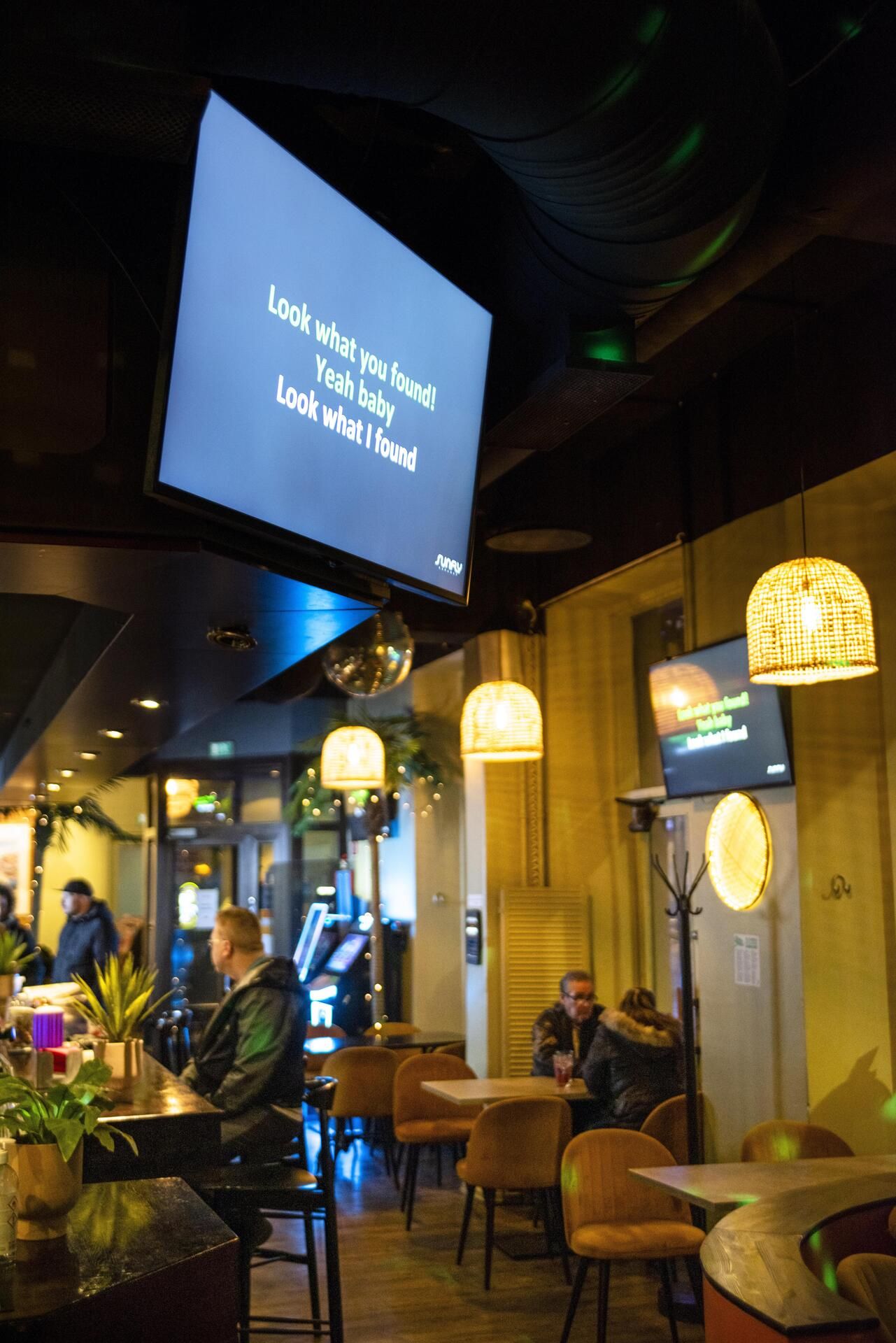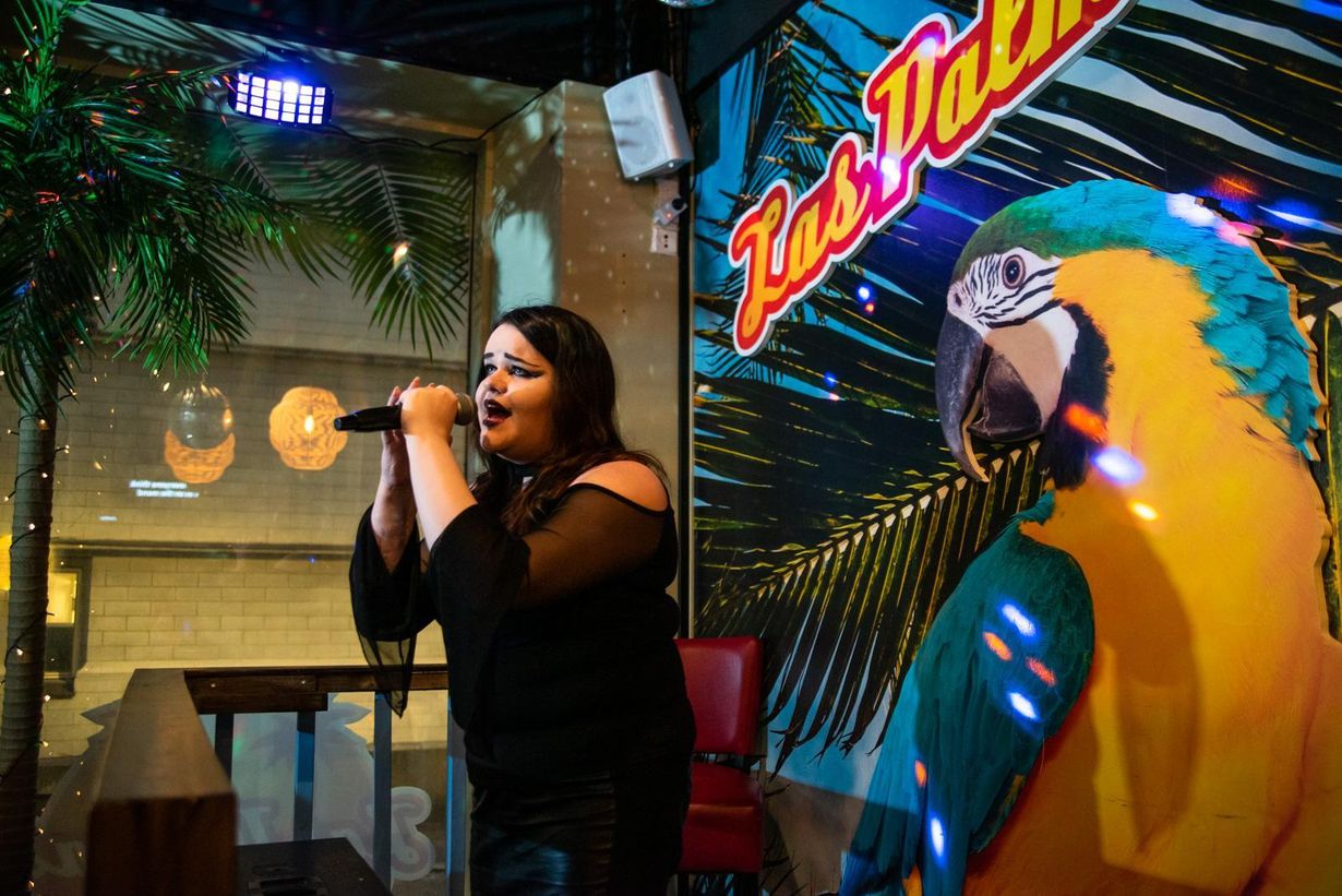En tiedä, osaako nainen laulaa, mutta sillä ei ole väliä. Tämä on Las Palmas -karaokebaari.