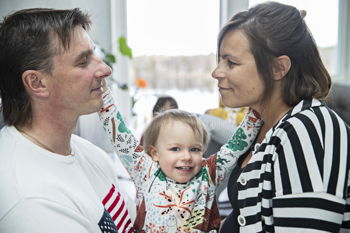 ”Monesti kuulee, että parisuhteessa on vaikeaa, kun lapset syntyvät ja elämä muuttuu. Meitä se on yhdistänyt entisestään. Kun lapsi syntyy, olemme vielä tiukemmin osanneet puhaltaa yhteen hiileen”, Greta ja Pasi sanovat.