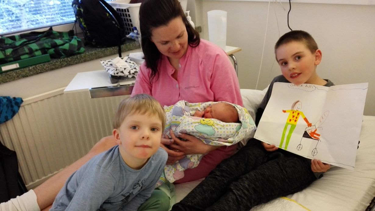 Etukäteen isoveli Joona, 8, toivoi, että vauva on söpö ja että hänestä tulee sählykaveri. Toinen toiveista on jo toteutunut. Joonan mielestä vauvan kädet ovat erityisen suloiset.
