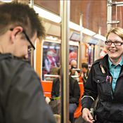 HAIN PYSÄKÖNNINTARKASTAJAKSI kolme vuotta sitten, koska halusin pois pesula-alalta. Työnkuva ei aina ole maailman palkitsevin, mutta jaksan, koska työkavereiden kanssa synkkaa niin hyvin. Jos jokin tilanne jää vaivaamaan, voin marmattaa sen saman tien kollegalle.