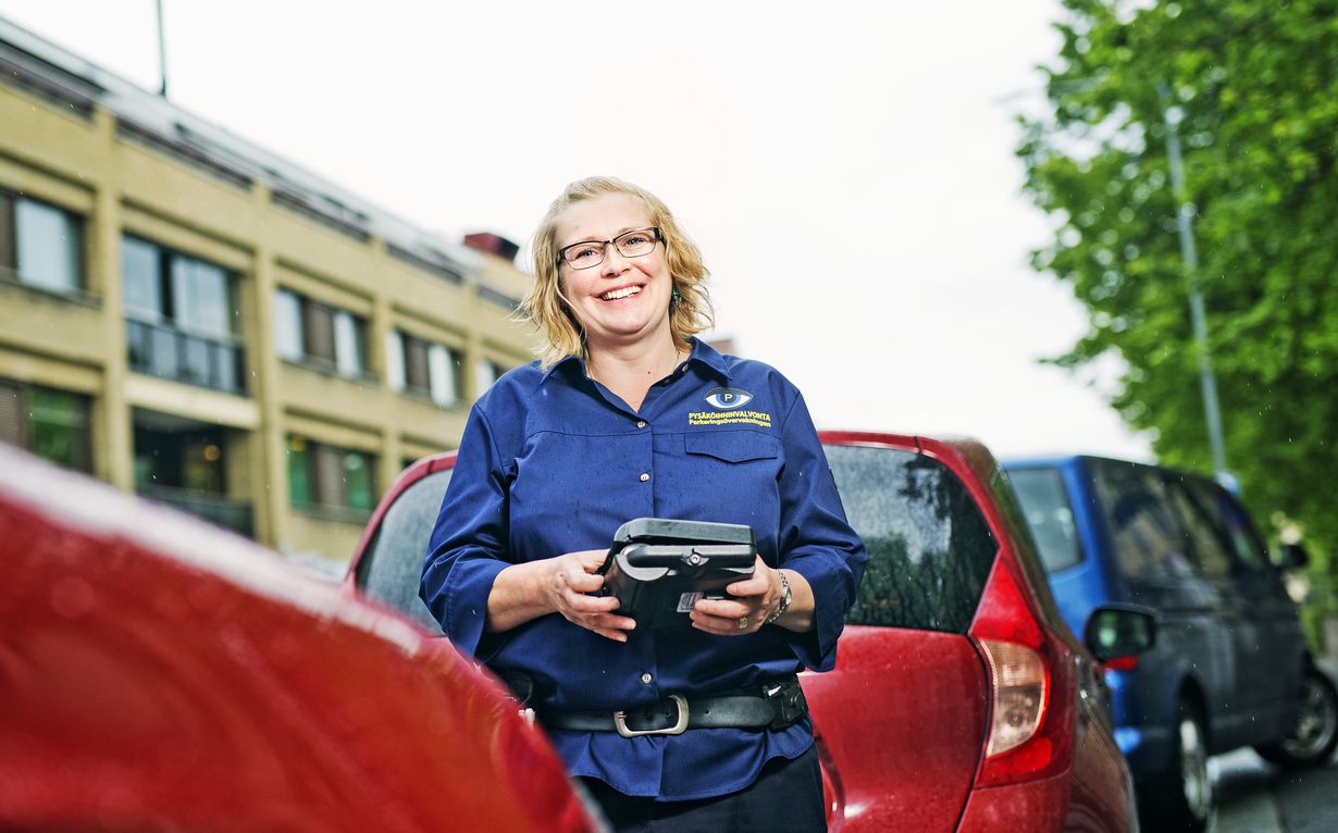 Pysäköinninvalvoja Tiina Salonen tietää, että liikenteessä autoilija on mielestään aina oikeassa. Vahdissa-sarjassa turvallisuusalan ihmiset kertovat työstään.