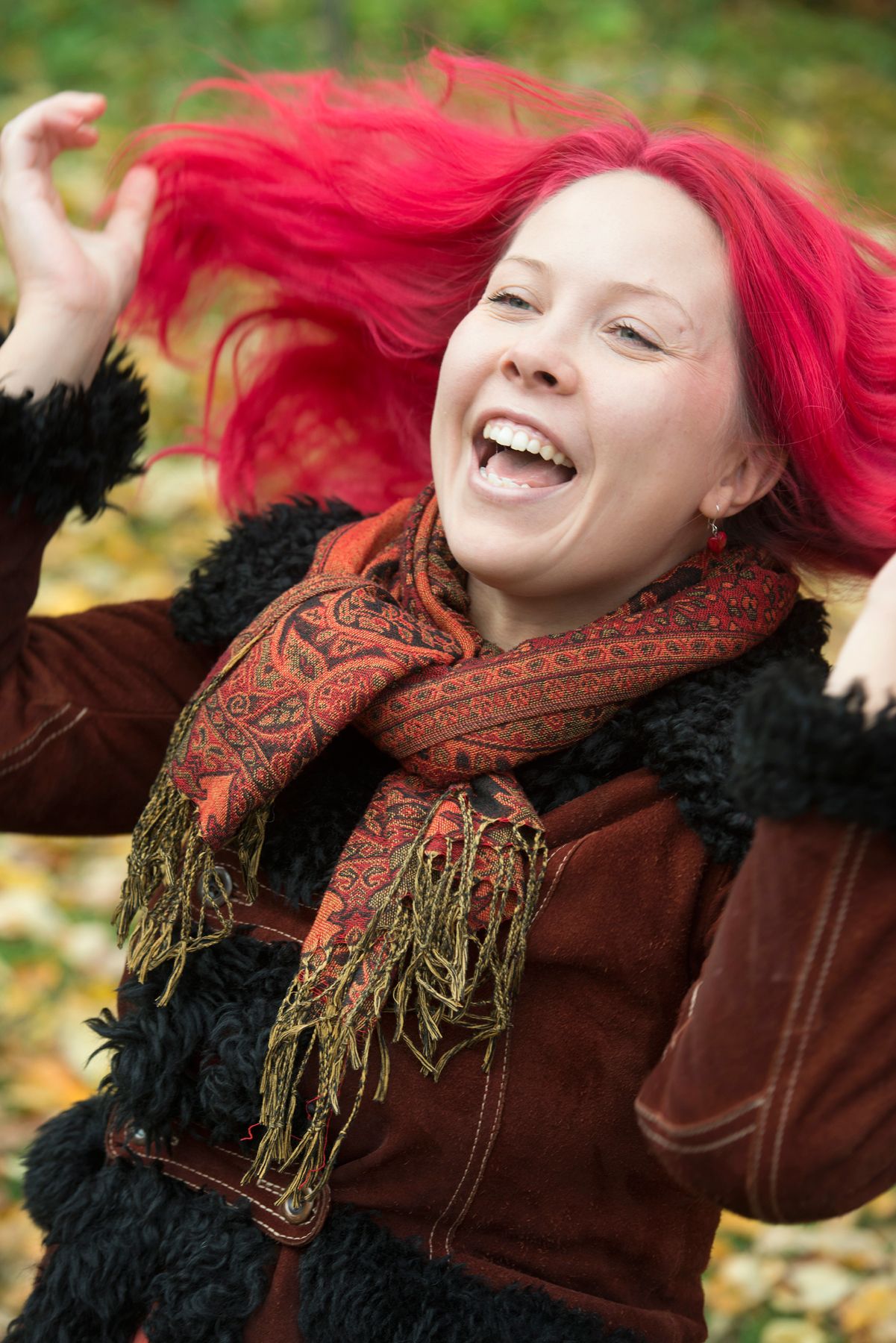 Riinalla on kirkkaanpunaiset hiukset, pitkä neulepaita ja villasukat. Hän on ryhdikäs ja huokuu rauhaa. Hän näyttää siltä, että hänellä on hyvä syli.
