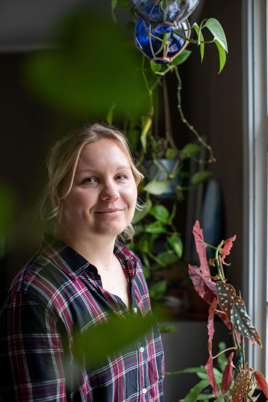 Riina Lepistö, 33, on pikkuhiljaa tottunut käymään mökillä yksin. Usein hän pukeutuu miehensä paitaan. ”Enää en joka kerta ajattele, että se on hänen paitansa.”