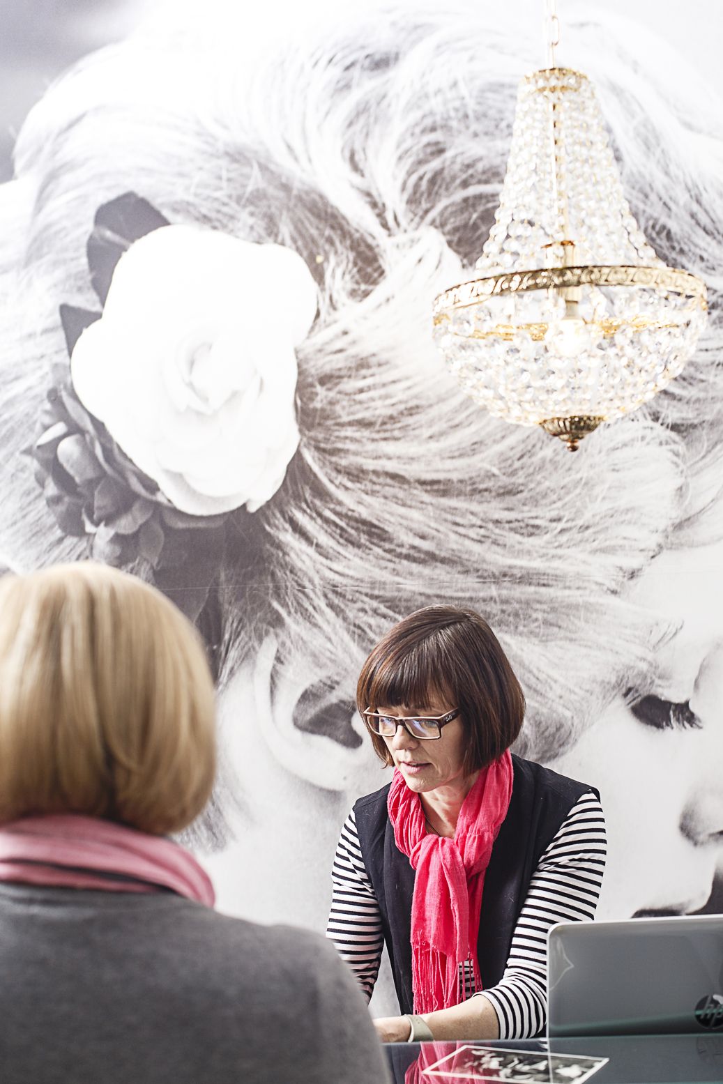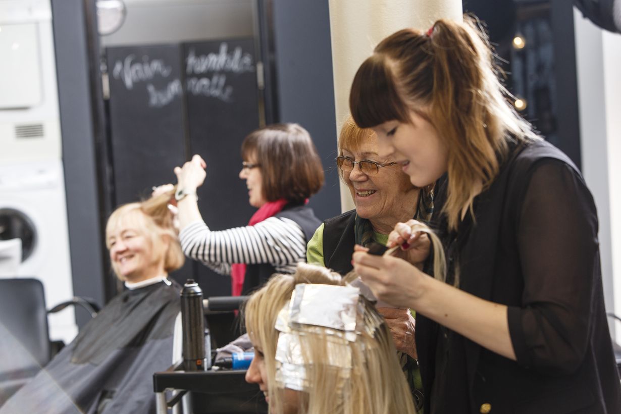 Kampaamossa työ on hektistä: kun yksi asiakas tekee lähtöä, toinen jo odottaa. Pienessä takahuoneessa irtopäiden ja toimistopapereiden keskellä kampaamon naiset haukkaavat pikaisesti purtavaa ja hörppäävät kahvia.