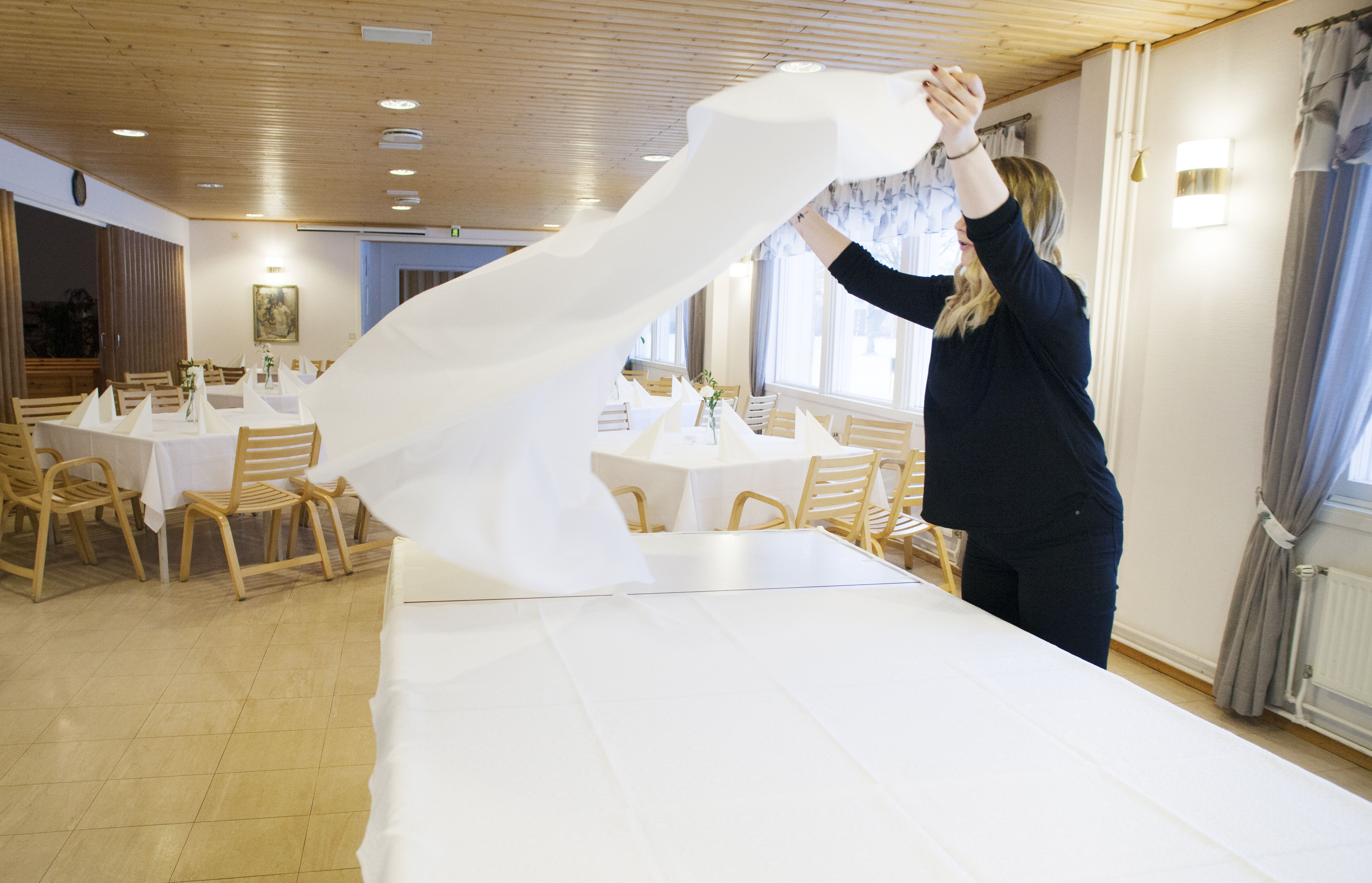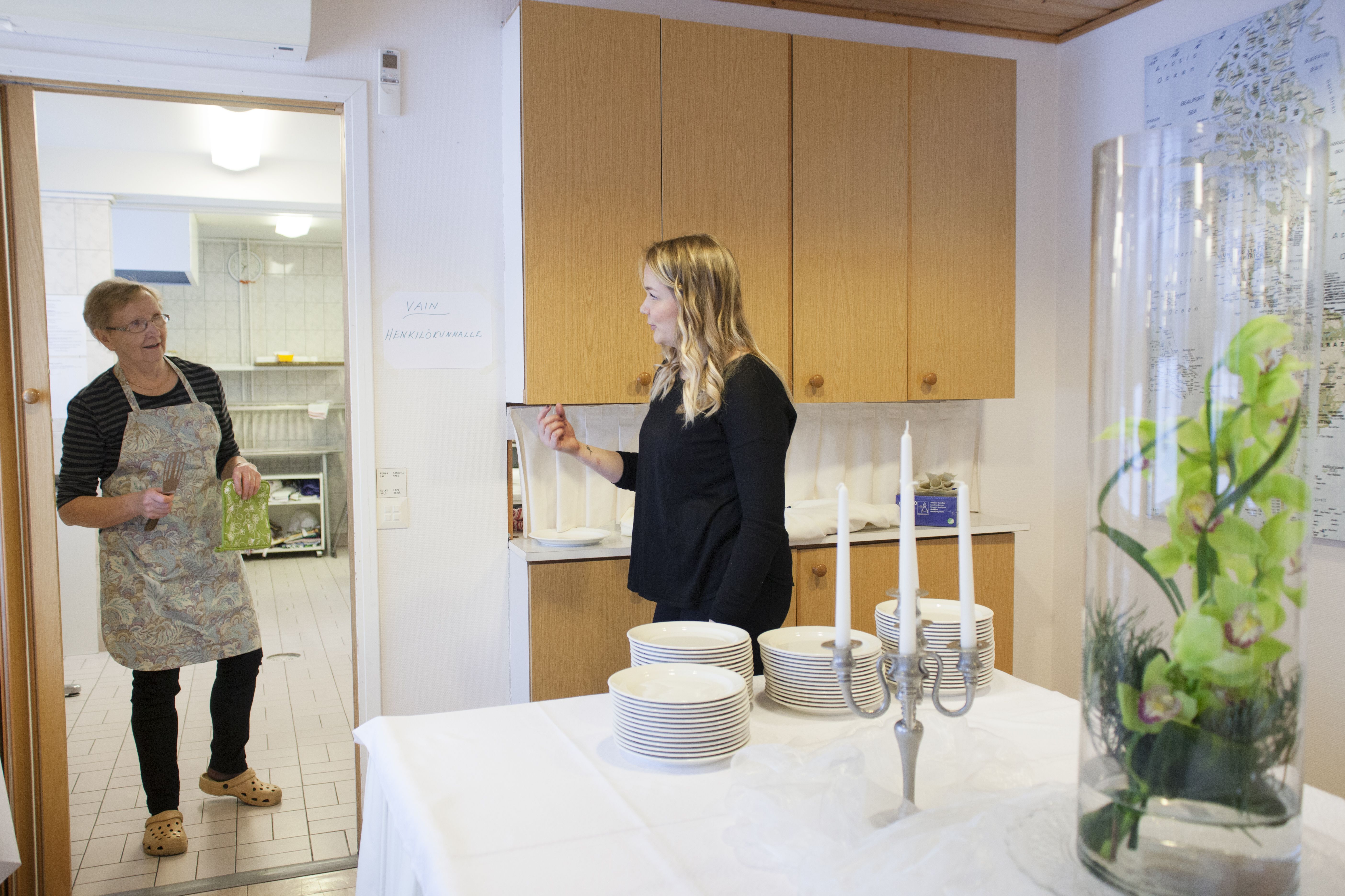 Kymmenen aikoihin perjantaiaamuna Sofia pyyhkii aterimista viimeisetkin vesipisarat ja kattaa ne pöytiin. Ennen sitä hän on pyöritellyt kirkon keittiössä 170 lihapullaa. Sitäkin ennen hän on nostanut pakettiautosta keittiöön ison kasan pakkilaatikoita. Niistä löytyvät kynttilät tinajalkoineen, tuikut, sokerikot, kermakot ja tarjoiluastiat.