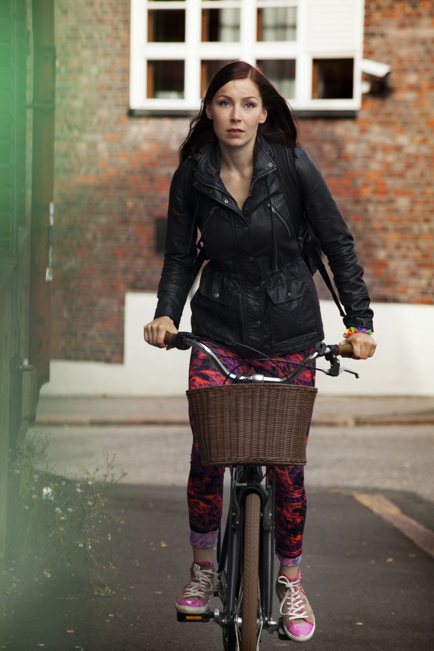 Työpäivä loppuu kello 15. Viivi polkee pyörällä kotiin.