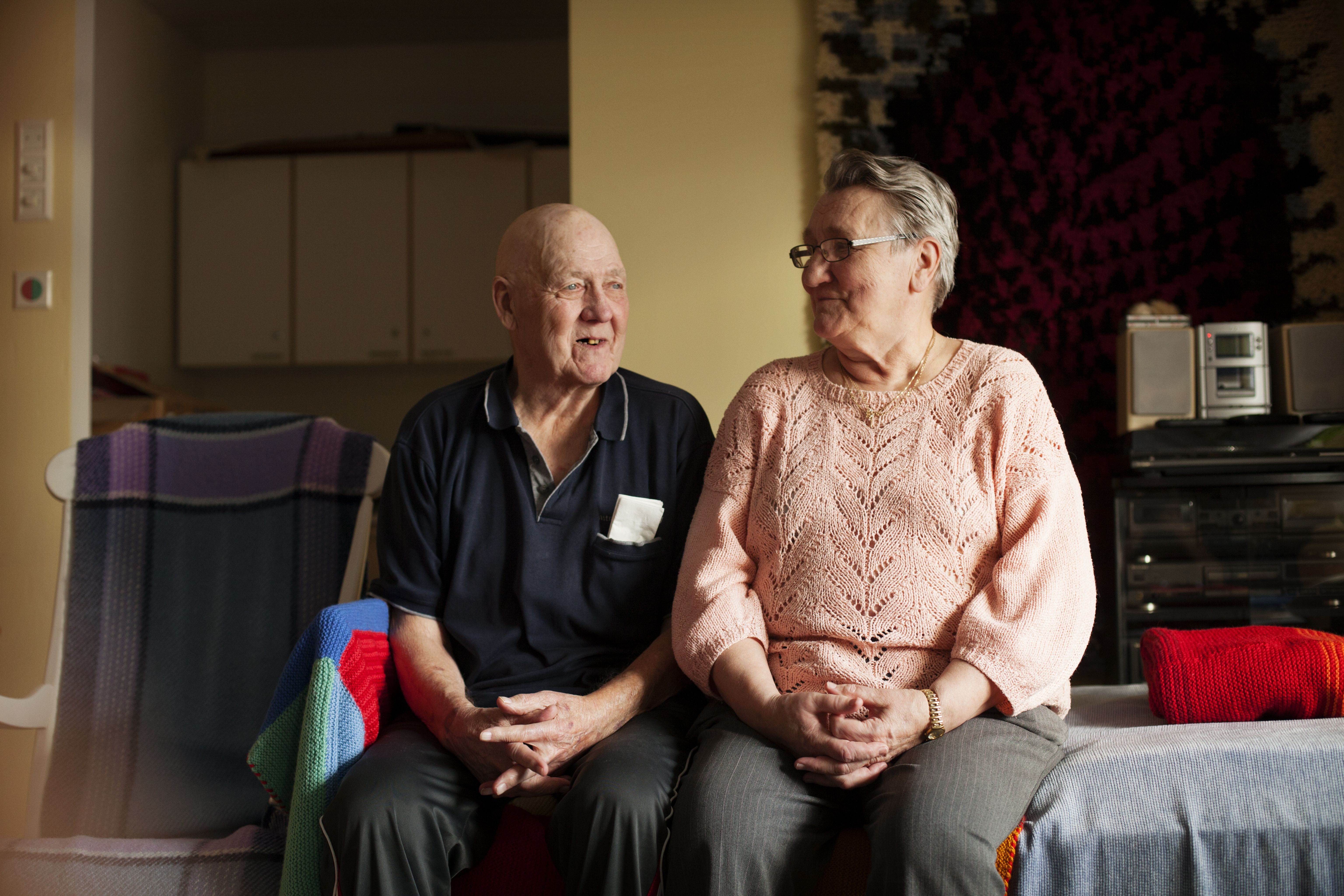 Ilman vaimoani en eläisi. Olisin antanut periksi, kun kivut ovat olleet kovimmillaan. Hoitokodissa olen asunut viikon. Täällä lääkitystäni muutettiin, ja kipuni hävisivät heti. Olen siitä niin kiitollinen, etteivät sanat riitä. Viikossa kuntoni on kohentunut niin, että ajattelin lähteä huomenna viikonlopuksi kotiin lomalle.