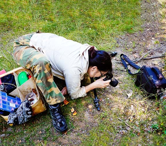 Hyvät ruokasienet ilahduttavat, mutta eniten innostun erikoisuuksista. Harvinaisen sienen löytäminen on kuin lottovoitto, sydän tykyttää ja tekee mieli hyppiä tasajalkaa. Silloin on pakko heti soittaa suurin piirtein kaikille. Kannan metsässä mukanani kameraa, jalustinta, sienikoria sekä erilaisia koteloita eri sieniä varten.