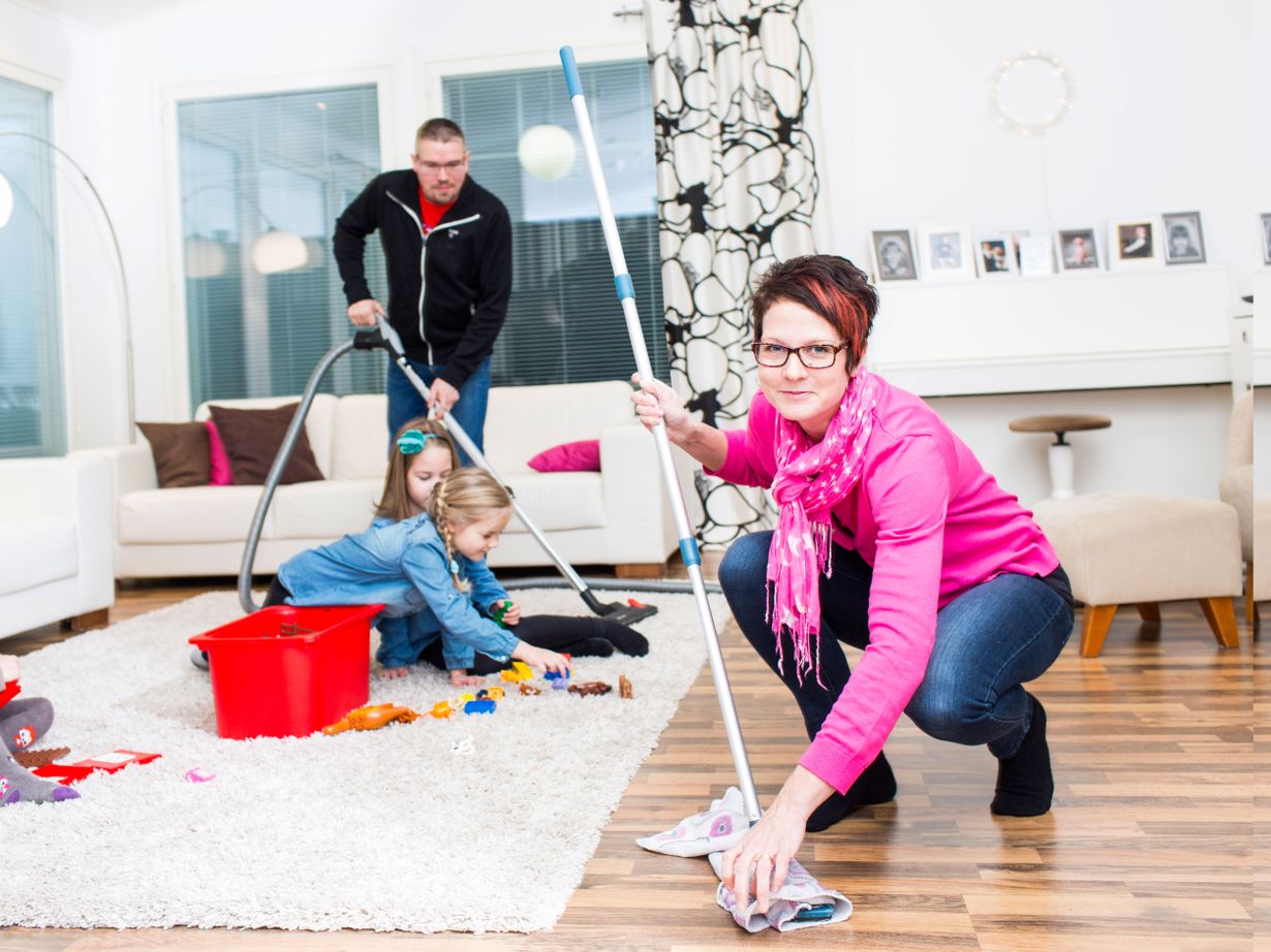 Siivouspäivä on joka torstai. Silloin Tapio aloittaa imuroimalla talon ja Eija luuttuamalla lattiat. Siitä Eija jatkaa peilipintojen puhdistamiseen, väliovien pyyhkimiseen, kaapinovien hankaukseen ja pölyjen pyyhkimiseen. Nea, Oona ja Emmi auttavat, Niko yrittää pakoilla.