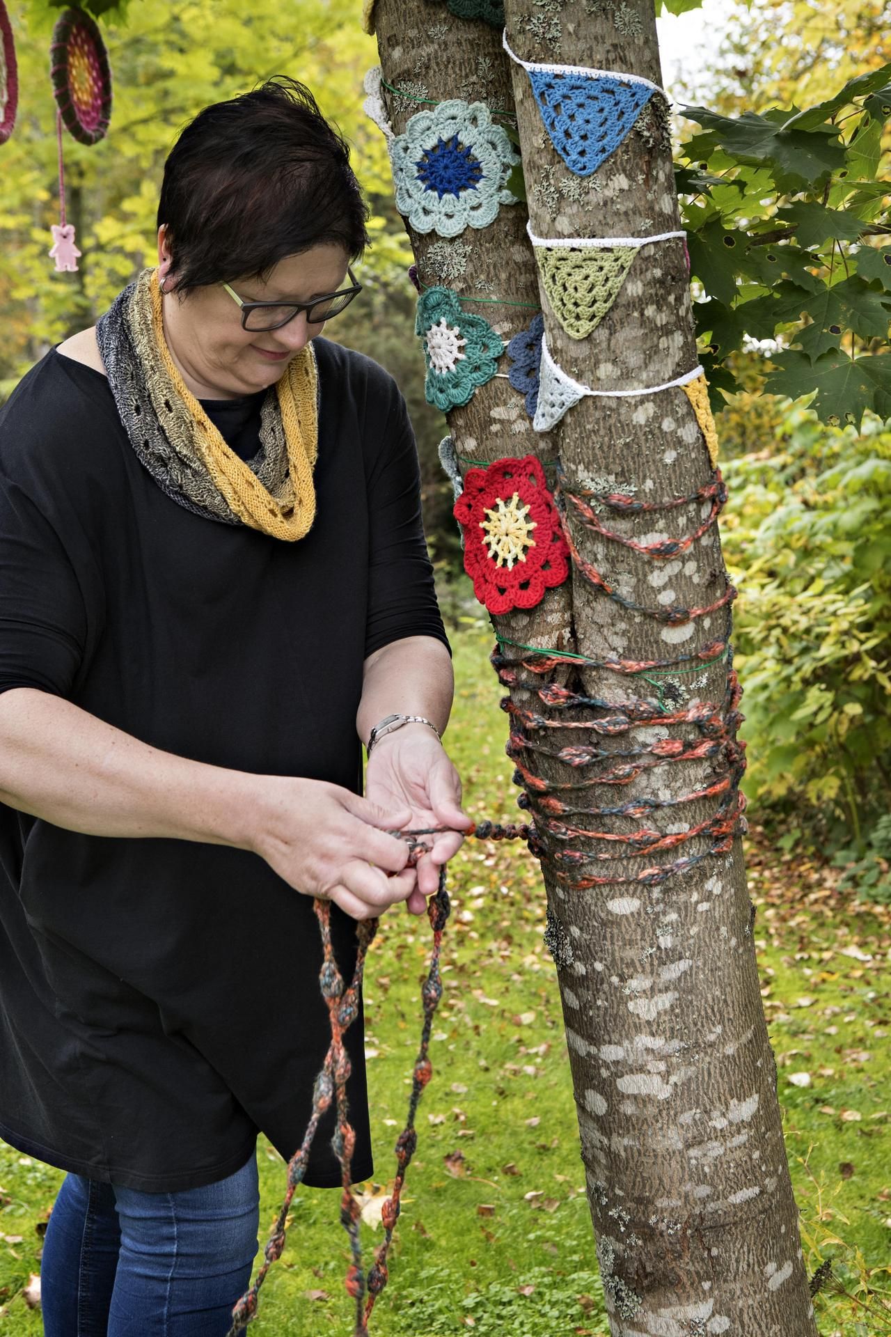 Viimeksi keväällä hän oli mukana neulomassa Jyväskylän keskustaan uutta graffitia. Sillä kertaa puiden ympärille taiteiltiin langasta värikkäitä kukkaköynnöksiä.