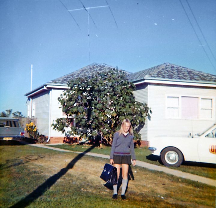 On vuosi 1971, olen 14-vuotiaana lähdössä kouluun kotimme edestä. Pidin kovasti koulunkäynnistä Australiassa.