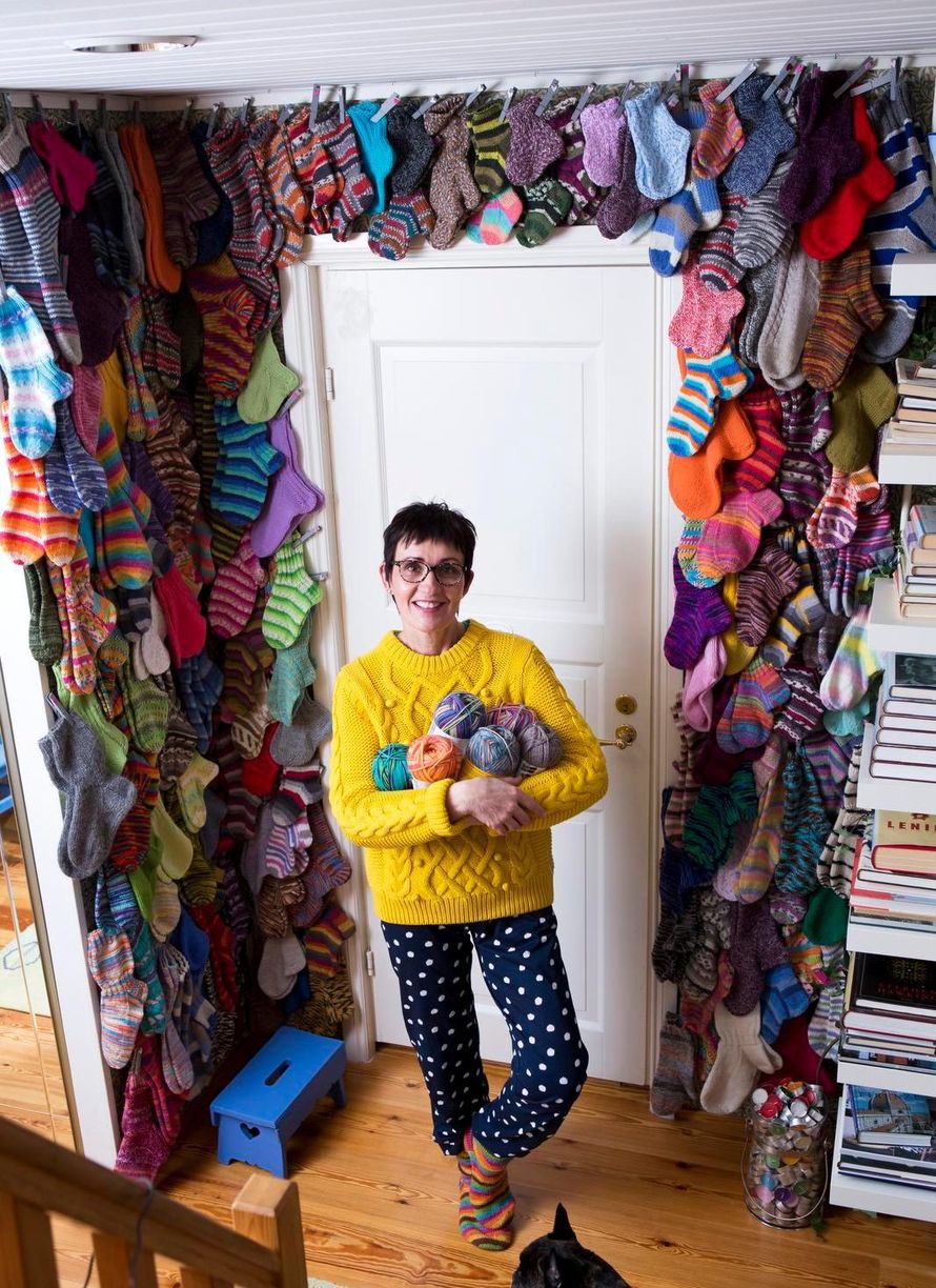"Isomummini kutoi sukkia koko suvulle. Kun hän kuoli, tajusin, että jonkun on jatkettava perintöä. Muuten suvulta loppuvat sukat. Olin yli viisikymppinen enkä ollut koskaan tehnyt sukkia. Pääsin alkuun, kun sisko neuvoi puhelimessa."