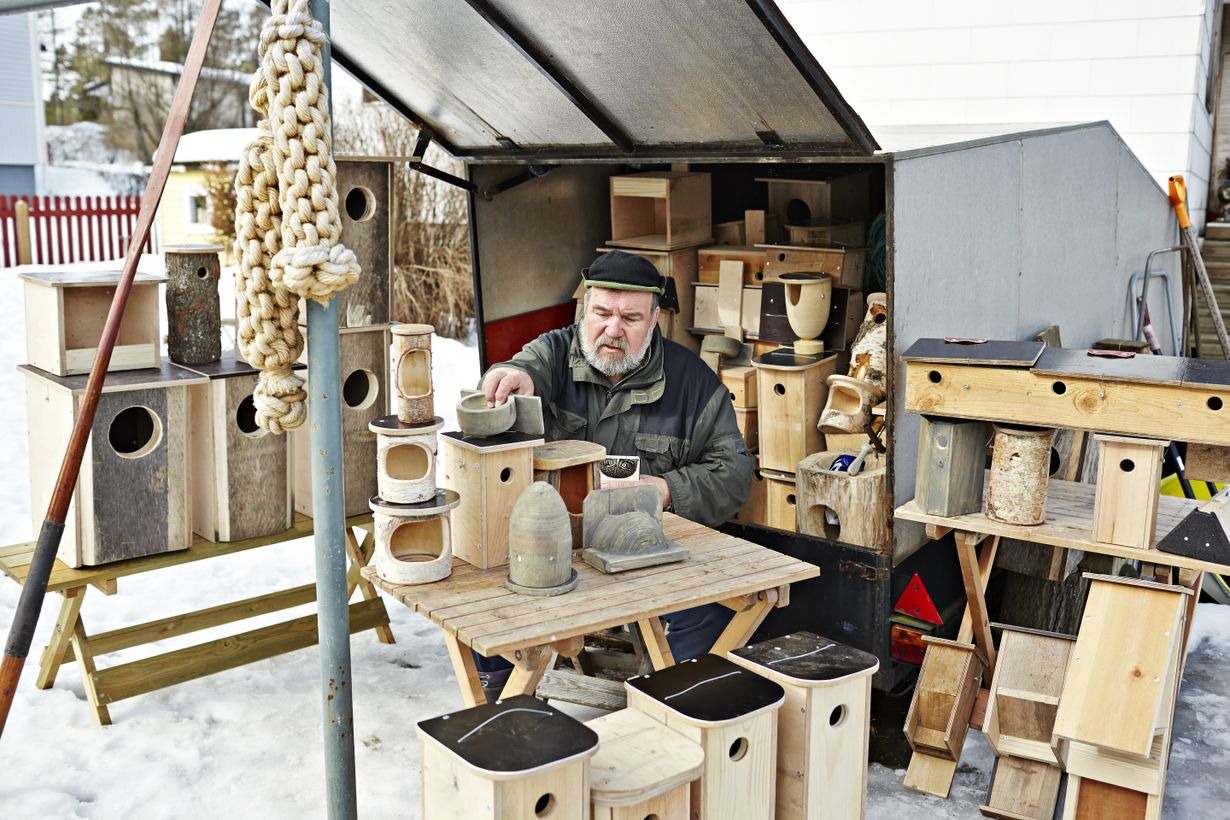 Olen melskannut pönttöjen kanssa nuoresta pojasta. Olen suunnitellut 90 erilaista pönttöä, kiinnittänyt niitä luontoon noin 3000 ja saanut 59 lintulajia pesimään niissä.