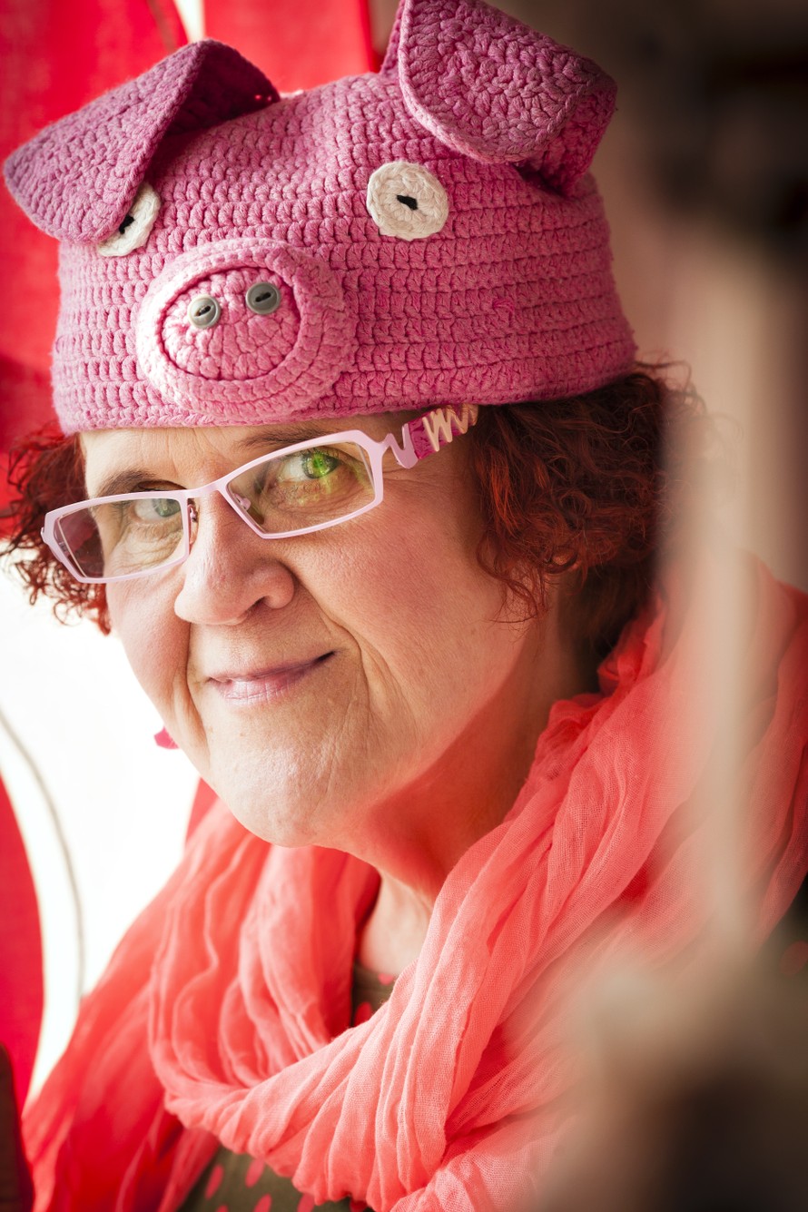 Vanginvartija Kylli Kylliäinen, 58, pukeutuu usein possuasuun lähtiessään kauppaan. Se johtuu siitä, että elämässä tärkeintä on nauraa ja välittää.