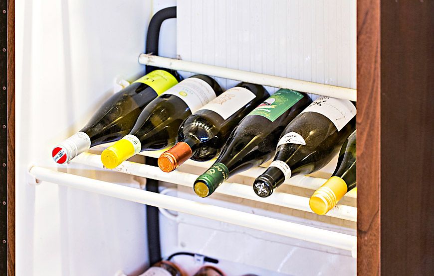 Muhkeat viinikaapit kertovat viiniharrastuksesta. Mauri isännöi naapuruston Bodega-viinikiltaa.