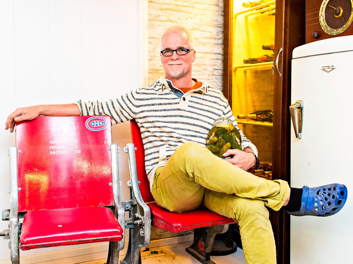 ”Kerhohuoneen” keskipiste ovat sohva ja taulu-tv, mutta sisustuksen kruunaavat kolme numeroitua lätkäkatsomon tuolia. Tuolit ovat peräisin vuonna 1996 puretun Montrealin jääkiekkostadionin katsomosta.