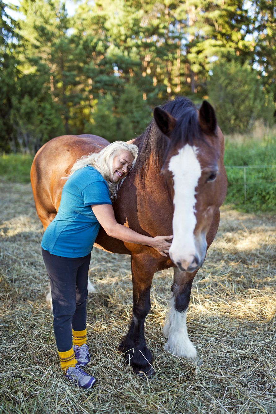 Ostimme Sastamalasta hevostilan ja hankimme elantomme maatilamatkailusta. Tuolloin 88-vuotias isäni tuki minua jälleen ja toimi tallipoikanamme. Kasvatimme hevosten ohella poroja ja jopa etanoita, tosin huonolla menestyksellä.
