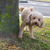 Ei koira silti syyllisyyttä tuntenut. Miksi olisikaan, kun vatsa oli täynnä herkkuruokaa?