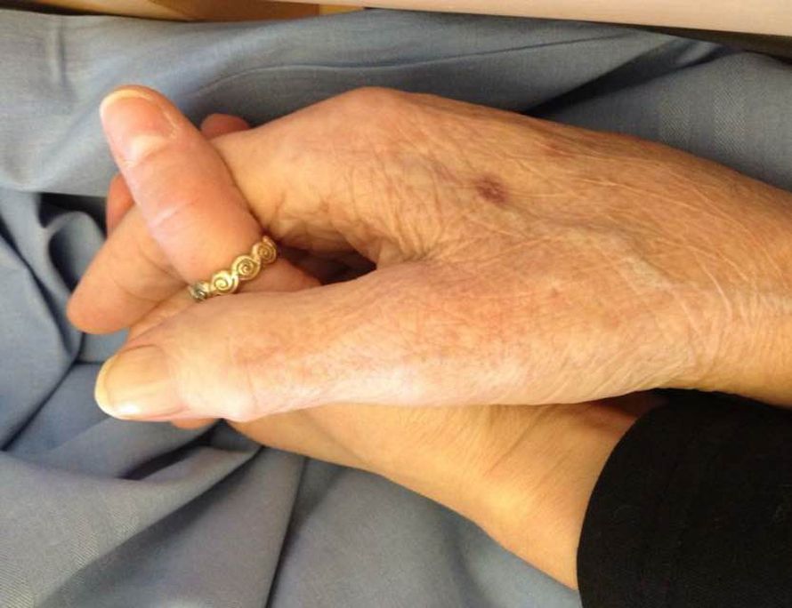 Kaikkein ihanin ja tärkein hetki oli, kun viikon alussa tulin katsomaan iskää. Hän nukkui kädet rinnan päällä päällekkäin. Istuin sängyn viereen ja laitoin käden hänen käsiensä päälle.