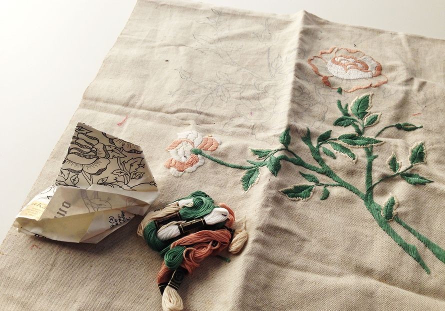 "Sain kuudesluokkalaisena käsityöintoilijana päähäni, että haluan kirjoa ruusutyynyn. Jouduin kinuamaan kirjontapakkausta pitkään, sillä äidin mielestä se oli kallis, ja hän väitti, että työ jäisi kuitenkin kesken. Parinkymmenen vuoden jälkeen en vielä suostu myöntämään, että hän oli oikeassa. Valmista tulee ihan kohta!"