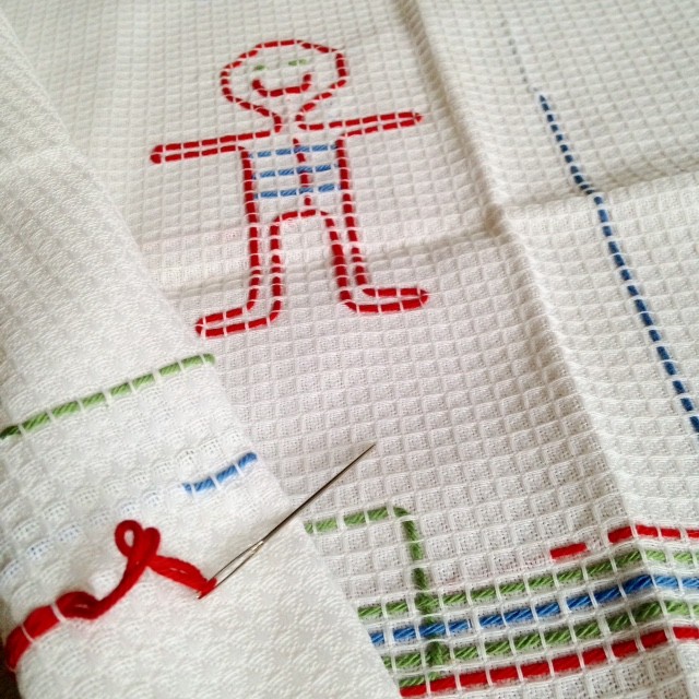 "Vuonna 2005 lapsi innostui vohvelikankaalle pujottelemisesta ja kirjoi itselleen tabletin. Äiti ei ole vieläkään päärmännyt reunoja."